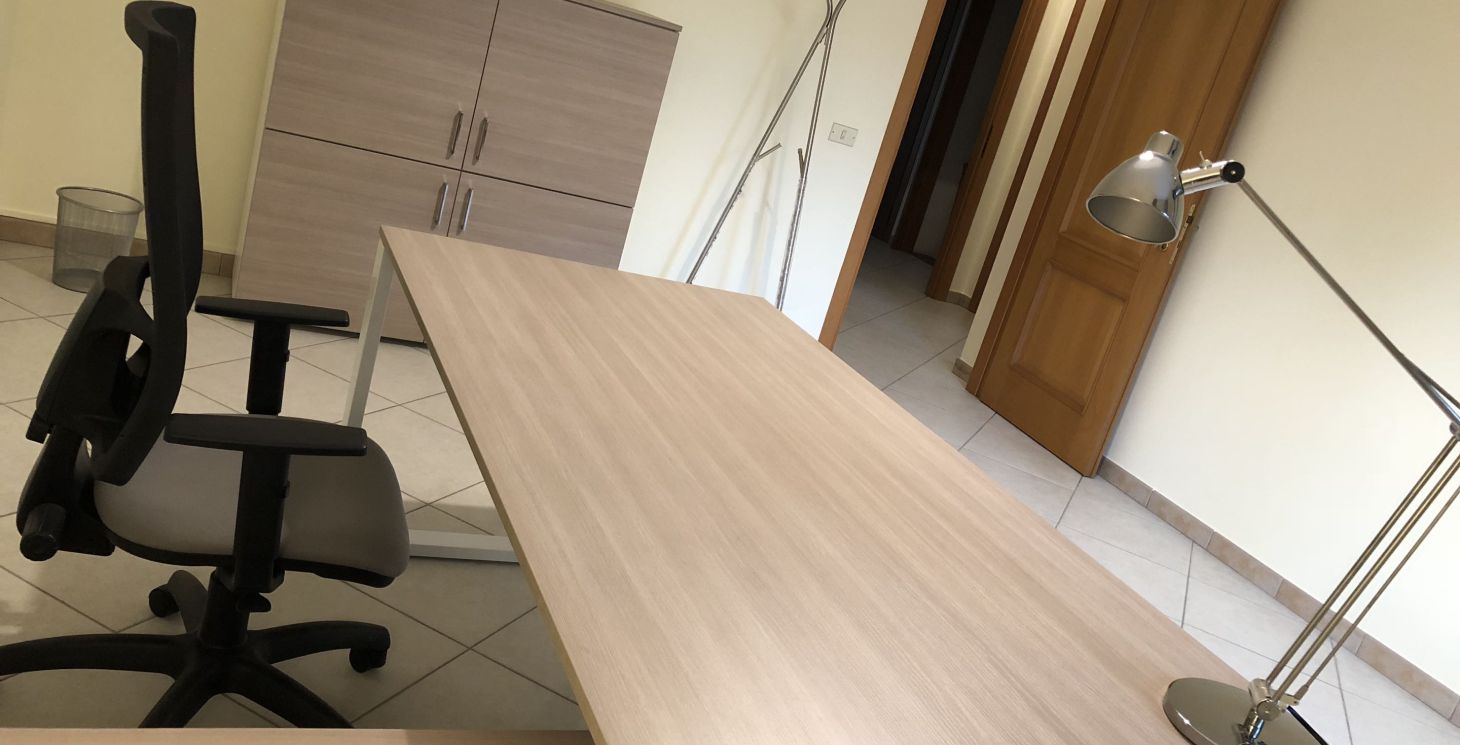 Una comoda e grande scrivania con servente lato destro che include 2 contenitori archivio + 1 cassettiera con chiave. Un ampio armadio quadrotto (4 ante). Una comoda poltrona e due sedute supplementari per ospiti e collaboratori. Incluso connessione internet Fibra (cablato o WiFI). TUTTO COMPRESO: niente consumi, niente bollette, nessun costo aggiuntivo imprevisto.